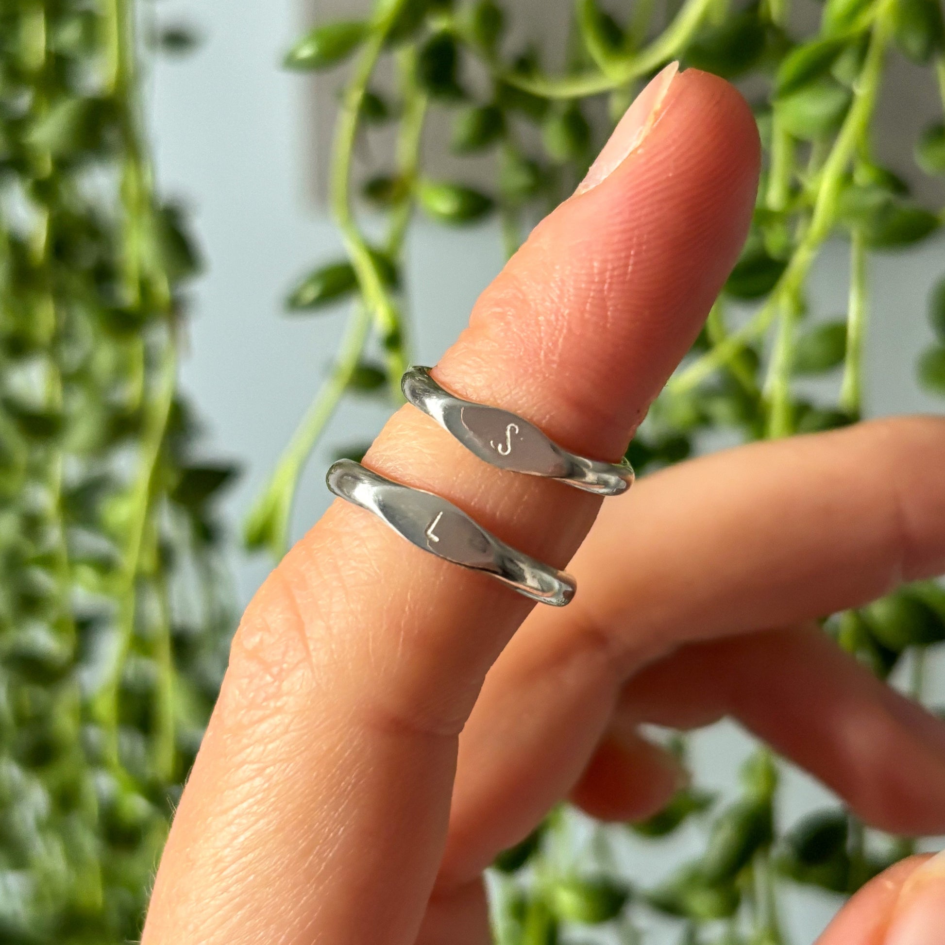 Handmade 925 silver ring with selected letter or number. Simple band, perfect for stacking with other rings. Ring band width is 2.5 mm.