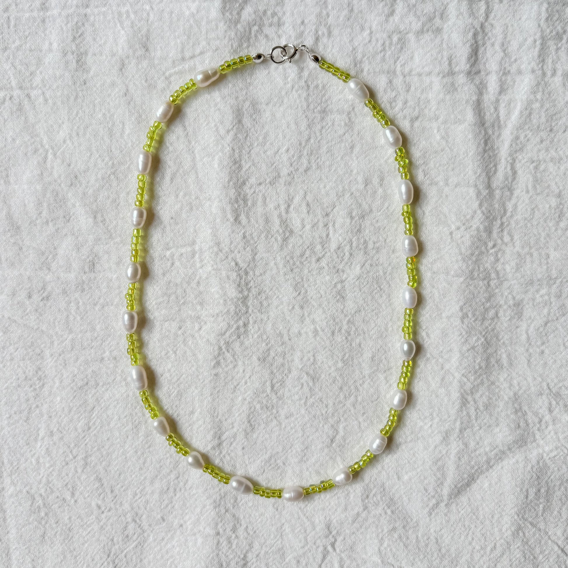 One of a kind handmade necklace with natural freshwater pearls and beads. Necklace details - 925 silver. 42cm in length.